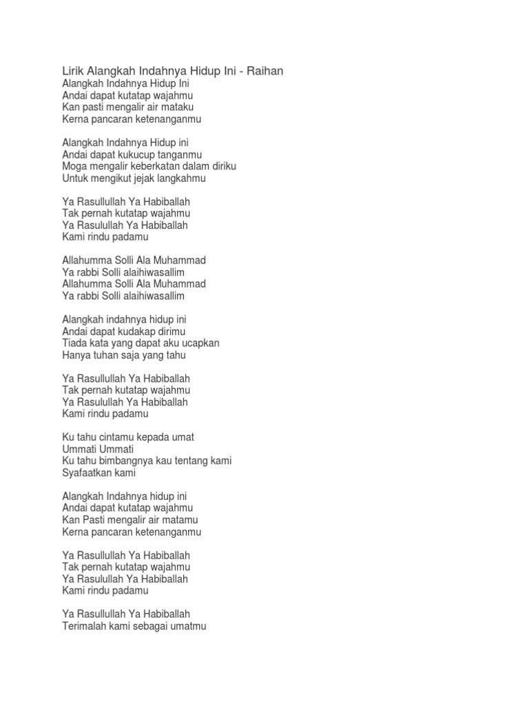 Alangkah Indahnya Hidup Ini Lirik : Alangkah indahnya hidup ini andai dapat kutatap wajahmu kan pasti mengalir air mataku kerna pancaran ketenanganmu.