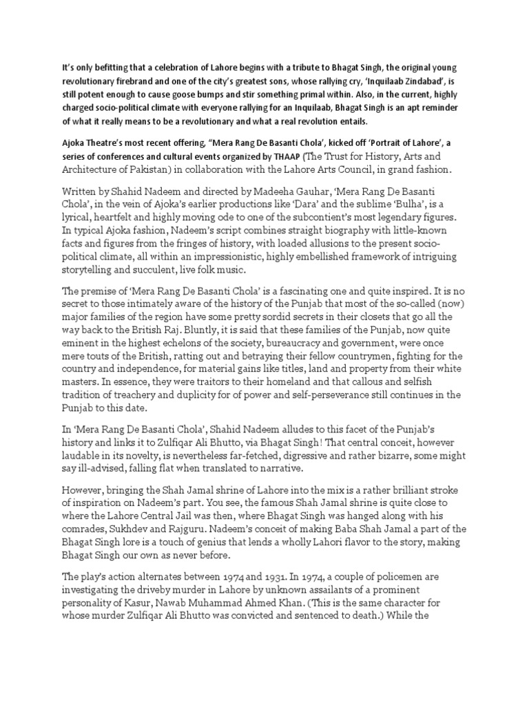 Mera Rang De Basanti Chola Writer / Nikle hai veer jeeya le yoon apna seena taane.